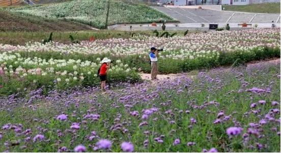 华蓥市禄市镇六水沟村引进业主,在撂荒地和山坡地上建起“百万玫瑰——梦幻花海”生态园,栽植玫瑰、三角梅等10多类数百种草本花卉、观赏草、观赏农作物花卉,从3月底开始陆续开花,部分品种将一直持续开到11月。单是园内的玫瑰花就有30多个品种,让你一次赏个够。