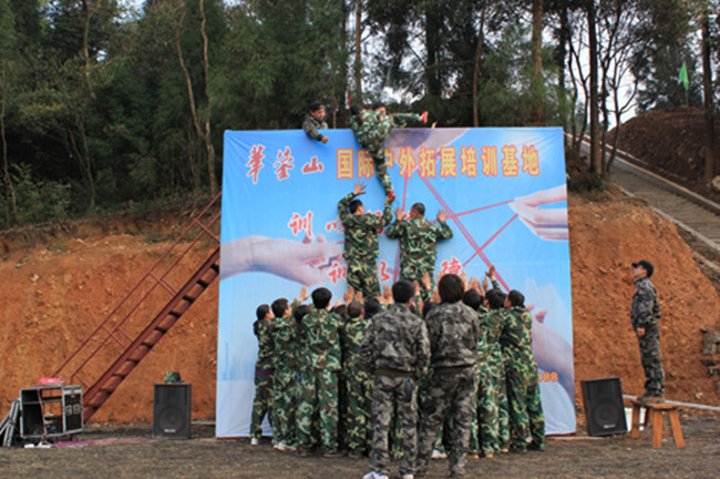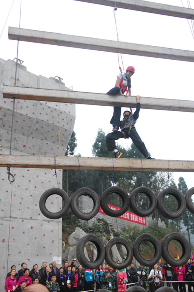图为拓展训练勇攀天梯